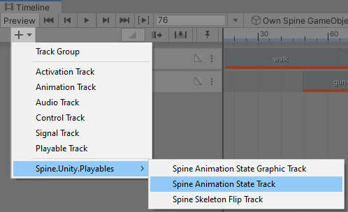 Spine Timeline currently provides three types of Timeline Playables: